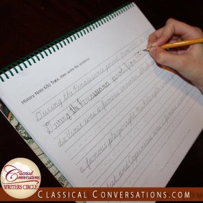 Anything can be used as a source text for copywork. We have used Scriptures, storybooks, the Acts & Facts Science Cards, and Prescripts by Classical Conversations. For a detailed description of each level of the Prescripts cursive writing program, click here.